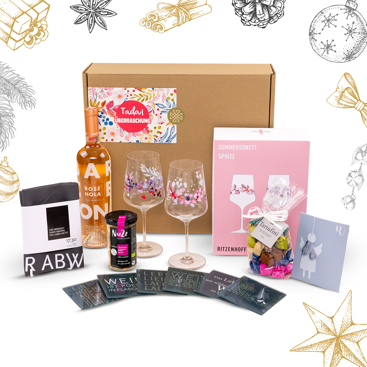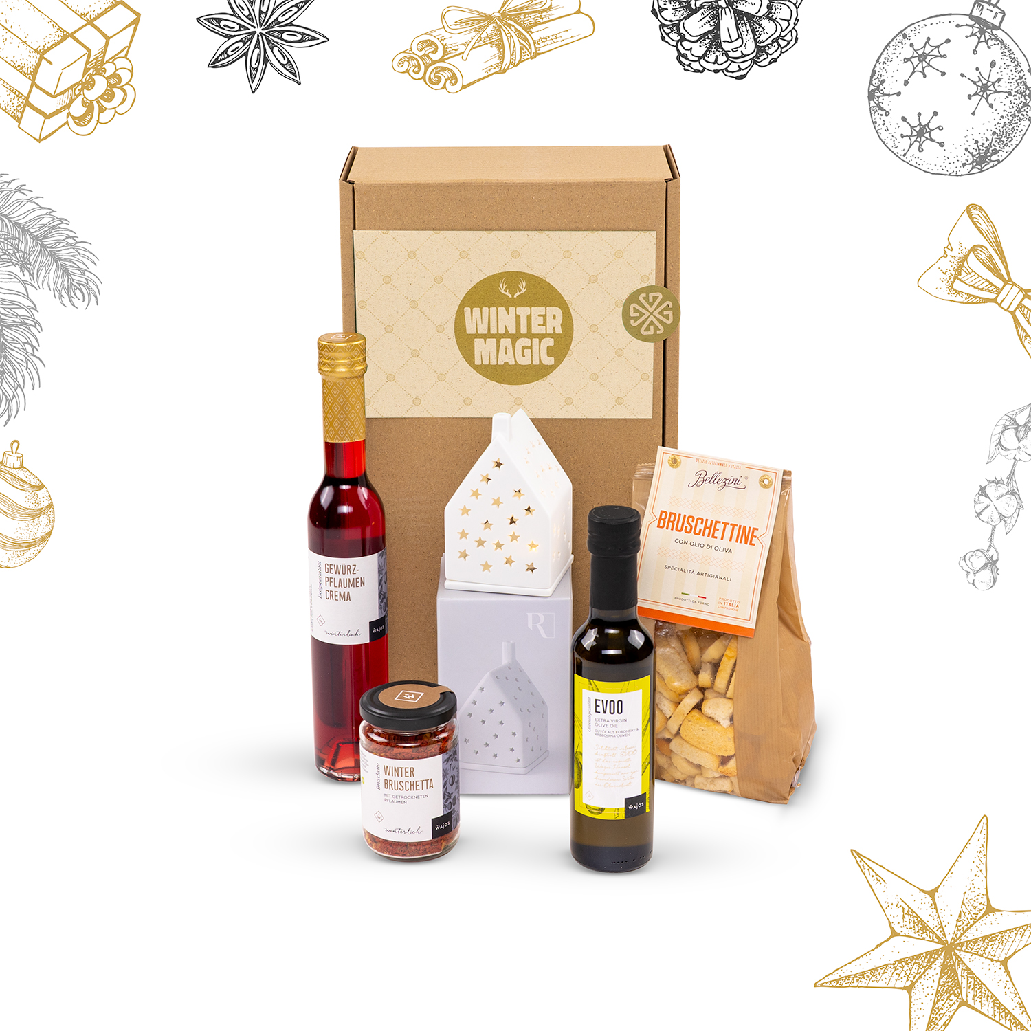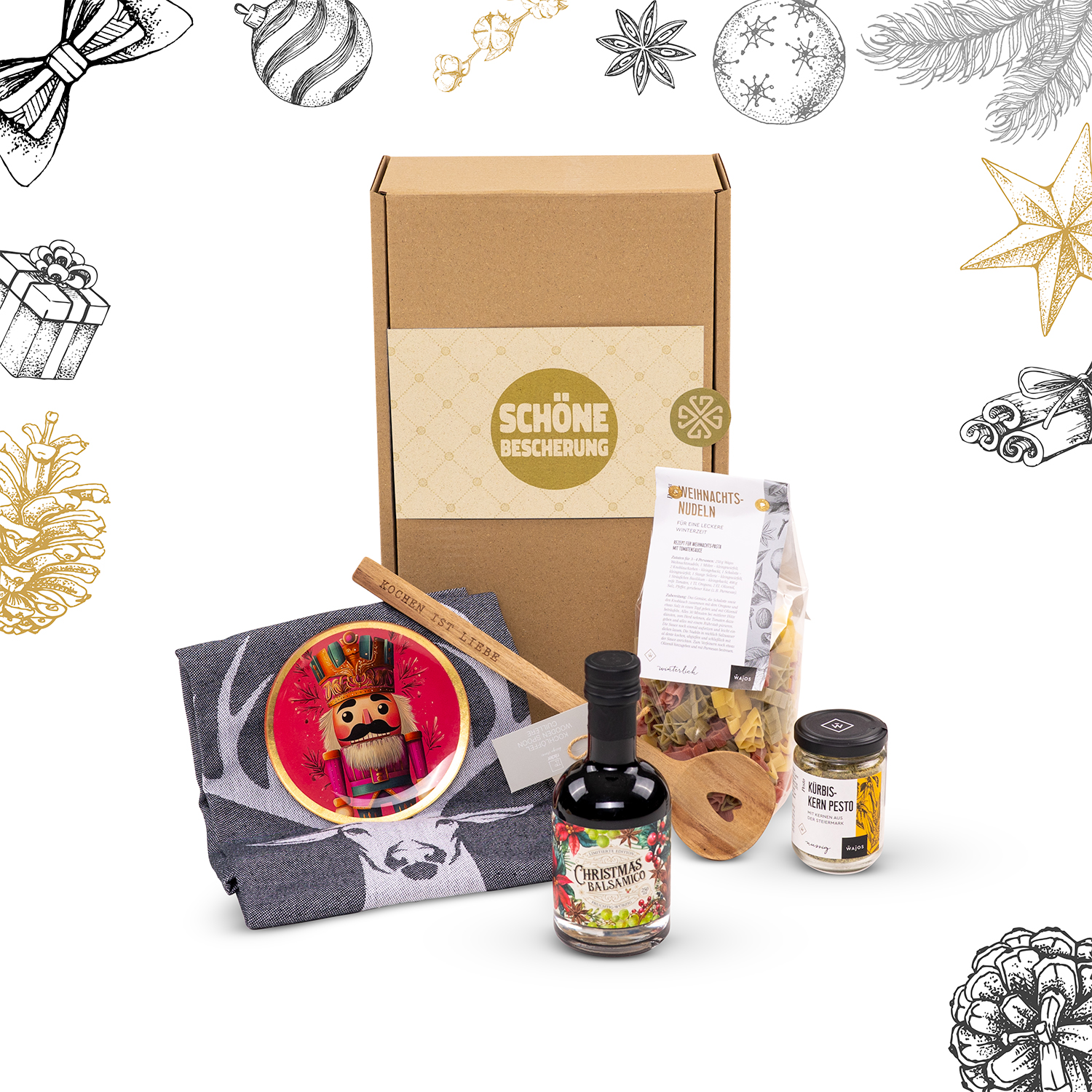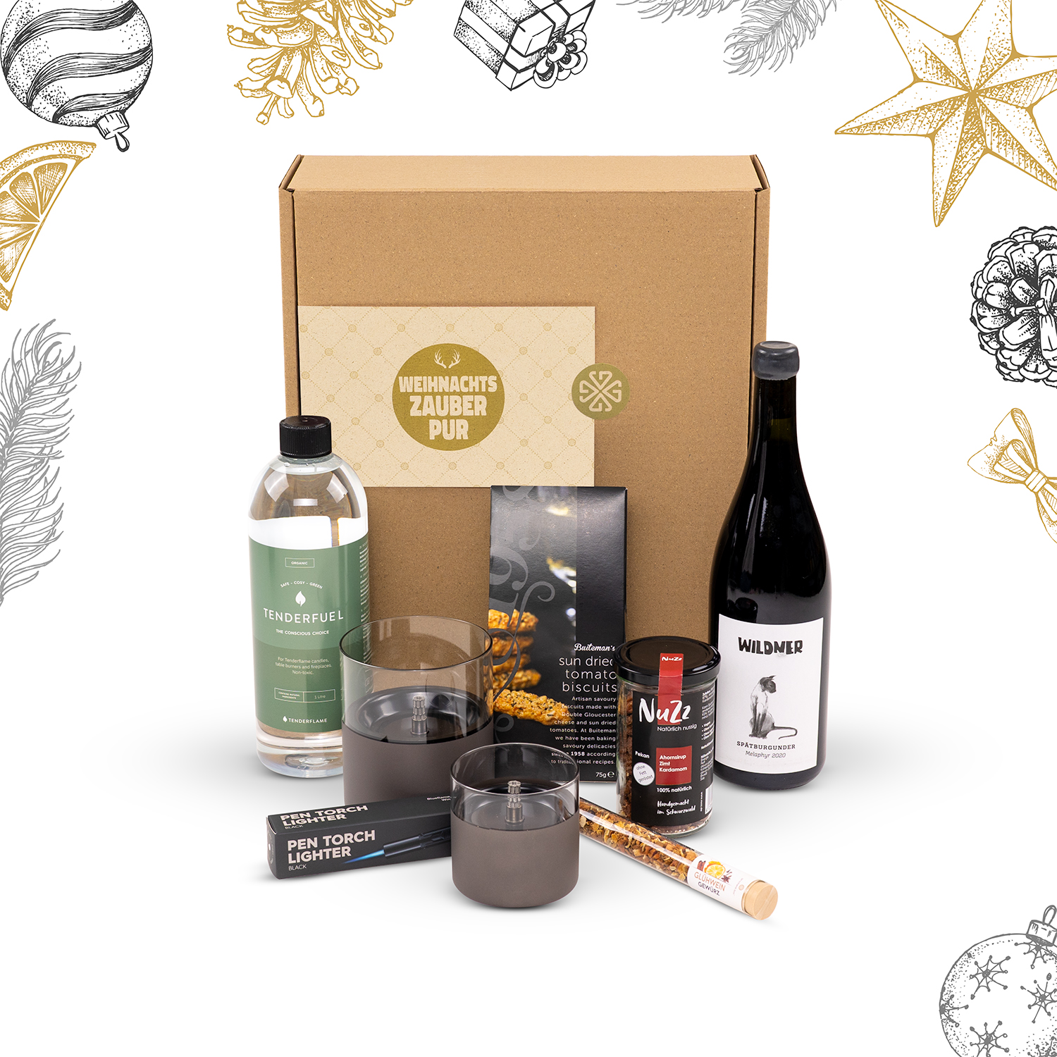 Stellen Sie Ihre eigenen weihnachtlichen Geschenkkörbe zusammen und verschenken damit Vorfreude auf das besinnliche Fest direkt zu Ihren Lieben nach Hause.